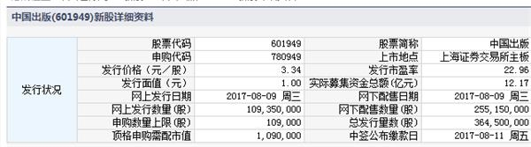 中国出版8月9日发行申购上限10.9万股