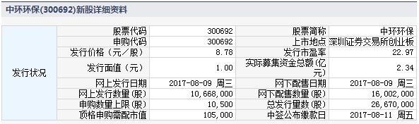 中环环保8月9日发行申购上限1.05万股
