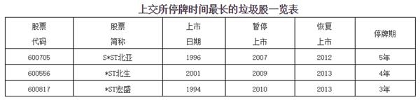 然而,在2008年至2012年这五年间,A股市场发生了令人难以置信的一幕:大批超级垃圾股长期停牌却不退市,其中,有14家超级垃圾公司在已经连续三年亏损的基础上,停牌时间居然超过5年,甚至有3家公司停牌时间竟长达7年,这是公然违背退市法则的现象。