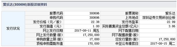 爱乐达8月11日发行申购上限1.7万股