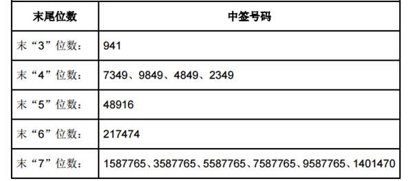 凡参与本次网上发行的投资者持有的申购配号尾数与上述号码相同的,则为中签号码。中签号码共有328,050个,每个中签号码只能认购1,000股中国出版A股股票。