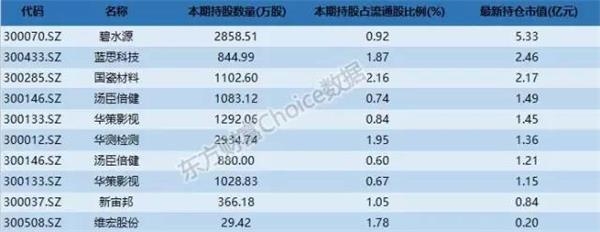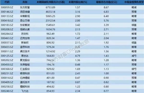 此外,东方财富Choice数据显示,截至8月14日,在已经披露半年报的上市公司中,国家队出现在36家创业板公司股东名单之列,其中持股市值最多的是东方财富,国家认持有8.67亿元,此外,持有汤臣倍健价值6.83亿元的股份。