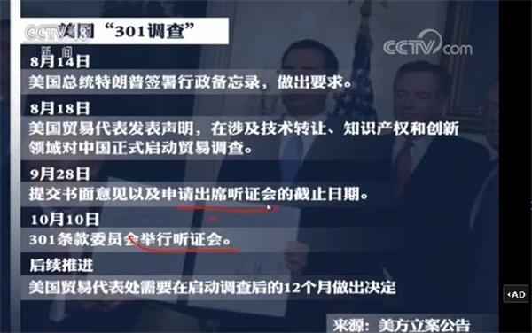 这个调查的依据主要是来自于美国1974年的贸易法的第301条,所以就叫301调查,它主要所说的是条款授权了美国贸易代表可以对他国的不合理或者是不公平的贸易做法来发起调查,而且可以在调查之后建议美国总统来施加加征关税等等单边的制裁,所以我们看到现在美国要挥起这个贸易保护主义的大棒向中国动手了,这两天媒体都在关注这件事。我们特别搜索了一些媒体的要点,看到了很多的标题,比如说有很多媒体都锁定在他背后的意图上。比如说美国正式对中国发起“301调查”背后有几个意思?到底会不会引发中美贸易战呢?到底这个调查是纸老虎还是杀手锏呢?无论什么规则都必须对美国有利才对吗?应该说现在美国301调查的正式启动已经开始了,怎么样捍卫自己的合法权益,已经变成我们现在必须要面对的问题了,我们手中有没有筹码我们得算一算,怎么样才能够做到制约和应对现在面对“301调查”我们该怎么办,这都是我们现在必须要面对的问题,所以今天我们就来重点关注这个调查。