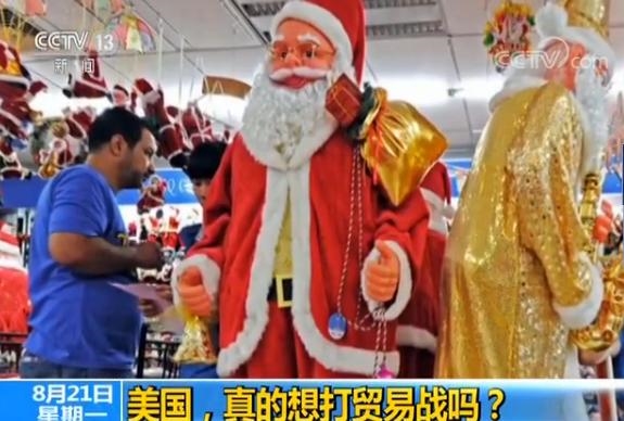 这是2015年,中国义乌的一家企业,正在给美国加工圣诞节产品的画面。圣诞用品的供货商告诉媒体,美国民众每购买10棵圣诞树,就有6棵来自中国义乌,这些漂洋过海的圣诞物品在过去10几年来一直是美国市场上的热销品。而自家工厂的人造圣诞树年产值在1000万人民币以上。不仅仅是圣诞用品,在义乌有很多类似的企业,主要在做加工出口,就连去年特朗普竞选时,义乌的一家企业就生产出口了美国40%的助选旗。