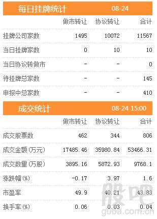 昨日新增挂牌企业10家,截至2017年8月24日,挂牌企业总数达到11567家。