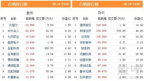从新三板股票的市场表现来看,今天有3只股票涨幅超过100%,共有45只个股涨幅超过30%。