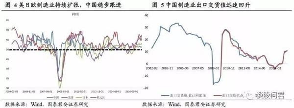 主要经济体制造业同步扩张,反映全球朱格拉周期已开启。跟踪亚洲、美洲及欧洲19个主要国家PMI,我们发现17年1-7月几乎所有国家的制造业都在扩张,韩国表现最差。同时,受益于美日欧制造业扩张,中国制造业出口交货值迅速回升,17年6月累计增速达10.68%,创近5年新高。并且,中国、美国、日本等纷纷出现了设备投资增速回升的现象。我们认为受设备更替和资本开支驱动的全球朱格拉周期已开启。