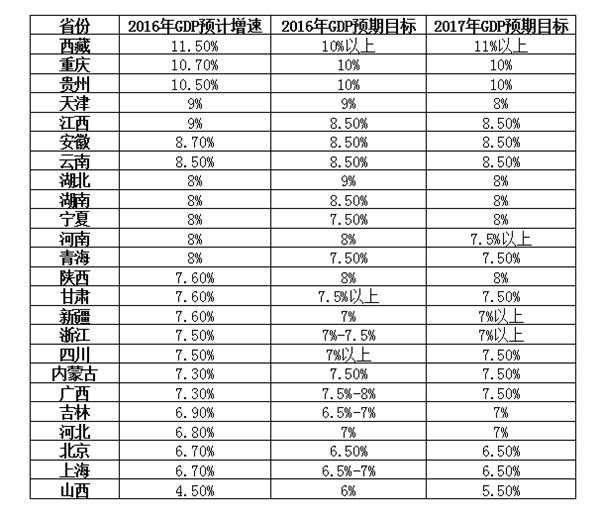 截至16日,24个省份公布2016年GDP增速初步数据,其中17个省份GDP增速达到或者超过当年GDP目标增速。