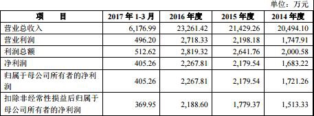 数据显示,广信科技2013年至2017年1-3月实现营业收入分别为23,081.10万元、20,494.10万元、21,429.26万元、23,261.42万元、6,176.99万元;实现归属于母公司所有者的净利润分别为2,405.07万元、1,721.26万元、2,179.54万元、2,267.81万元、405.26万元。