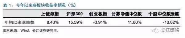 (1)年初以来基金中位数涨幅略超10%,赚钱效应似乎很突出,然而市场股票中位数却录得-10%的收益;