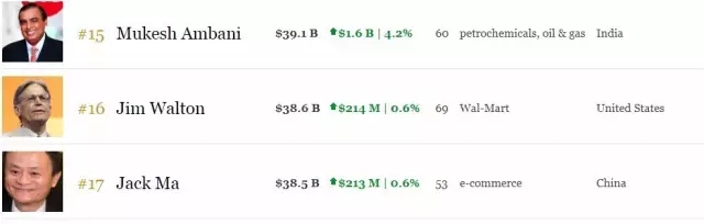 截至发稿,穆克什和马云的个人财富在福布斯全球富豪榜单上分别排名第15、17名。