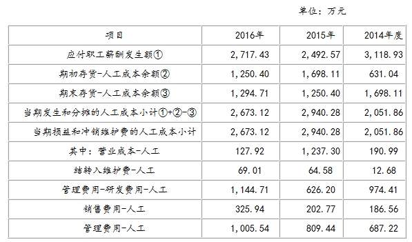 而品恩科技IPO被否的一个原因便是,发审委质疑的一个重点便是品恩科技各期营业成本-人工和应付职工薪酬之间的量化关系。