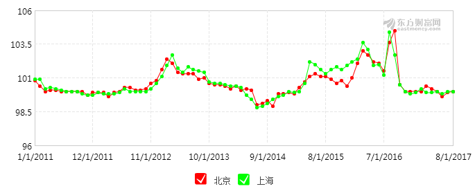 我们来看下今年春节后上海市商品住宅每周走势图,从绝对值来说,房价基本保持平稳。就如同现在讨论8月份M2增幅创历史新低一样,不能说明资金投放小了,而仅仅说明去年的增幅太大。