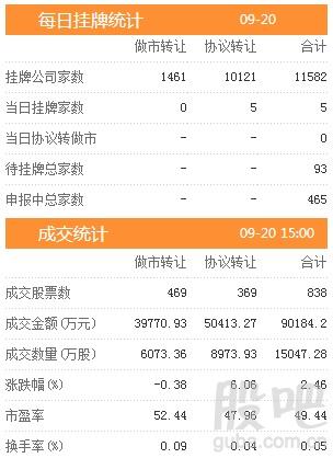 昨天新增挂牌企业5家,截至2017年9月20日,挂牌企业总数达到11582家。