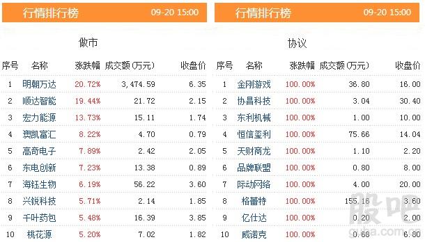 从新三板股票的市场表现来看,今天有10只股票涨幅超过100%,共有54只个股涨幅超过30%。