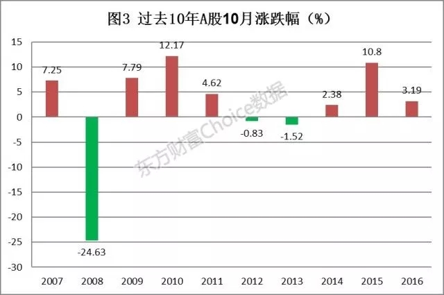 从过去10年A股10月份的表现来看,整体也还是涨的多跌的少,过去十年有7年上涨3年下跌,上涨概率达70%。