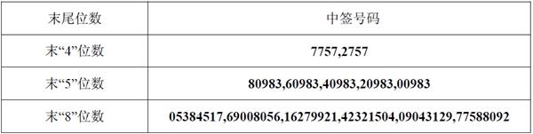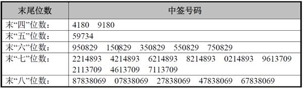 凡参与网上发行申购新东方新材料股份有限公司A股股票的投资者持有的申购配号尾数与上述号码相同的,则为中签号码。中签号码共有23,101个,每个中签号码只能认购1,000股新东方新材料股份有限公司A股股票。