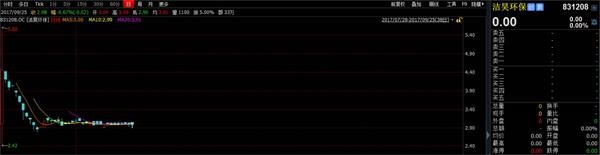 洁昊环保在7月28日迎来复牌,当天收盘价4.46元,成交额为275万元。对比停牌前的7.29元/股,洁昊环保股价接近腰斩。与迈奇化学稍有回升不同的是,洁昊环保最近依旧处于下跌状态,最近一次收盘价仅有2.98元/股。