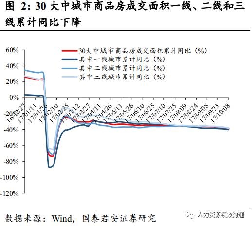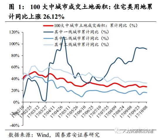 地产整体销售同比下降。在各地房地产政策如限售、上调房贷利率的调控下,商品房销售持续降温。(1)国君地产组以全国40大中城市为样本,构建了一手房销量指标。环比:整体环比上升27%,其中一线上升41%,二线上升38%,三线上升9%。同比:整体同比降48%,其中一线降45%,二线降54%,三线下降38%。本周与2016年全年周均比:整体降40%,其中一线降43%,二线降43%,三线降43%。二手房销量:本周环比上升33.5%,同比下降52.2%。(2)最近一周,100大中城市成交土地面积:住宅类用地累计同比上涨26.12%,其中一线城市累计同比上涨90.87%,二线城市累计同比上涨16.13%,三线城市累计同比上涨32.42%。(3)30大中城市商品房成交面积累计同比下降36.78%,其中一线下降39.08%,二线下降36.98%,三线下降36.75%。