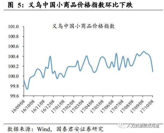 量价方面,下游地产销售下滑,土地成交面积同比下跌,中游六大发电集团发电力度环比下降。(1)下游:地产整体销售本周环比上升,同比持续下滑,住宅类土地成交面积累计同比上升;9月车市零售逐渐走强;义乌小商品价格指数环比下降,电影票房环比上升;猪肉、鸡肉价格环比下跌,蔬菜价格上涨。(2)中游:高炉开工率环比上升,6大发电集团日均耗煤环比下降,发电力度下降;螺纹钢价格环比上涨;水泥价格和玻璃价格均上涨;(3)上游:动力煤、焦炭期货价格环比上涨,焦煤期货价格环比下跌;铜、铝、锌价格均环比上涨;海运指数BDI、BPI、BCI均环比上升。美国就业情况整体向好,美联储12月加息预期提升,美元指数上涨0.1%。受美元走强影响,黄金价格高位回落。