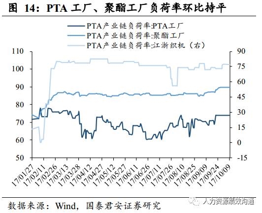 甲醇、聚丙烯环期货价格上涨,PTA产业链江浙织机负荷率持平。(1)10月9日,从期货结算价格上看,甲醇价格环比上涨1.64%,沥青价格环比下跌3.76%,聚丙烯环比上涨1.03%。(2)10月9日,PTA产业链PTA工厂、聚酯工厂、江浙织机负荷率环比均持平。