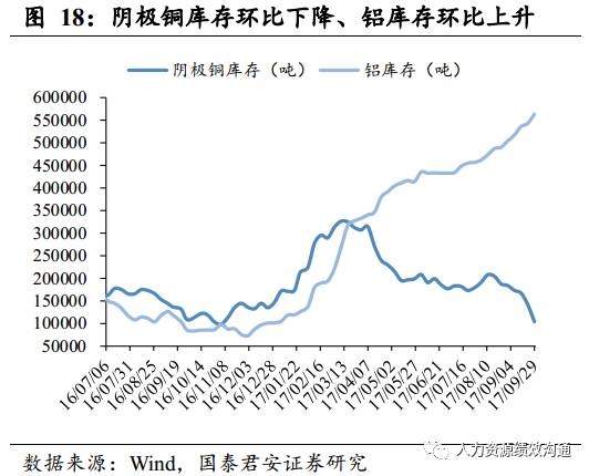 铜、铝、锌价格环比均上涨,阴极铜库存继续下降。(1)本周铜、铝、锌金属价格均上涨,截至10月9日,LME3个月铜期货价格环比上涨2.4%,LME铜现货价格较上周上涨2.35%;LME3个月铝期货价环比上涨3.21%,LME铝现货价格较上周上涨3.29%;LME3个月锌期货价环比上涨2.28%,LME锌现货价格较上周上涨3.06%。(2)库存方面,截至9月29日,本周阴极铜库存较上周环比下降27.01%(上周环比下降15.25%),铝库存较上周上升3.71%(上周环比上升1.33%),锌库存较上周下降4.03%(上周环比下降3.5%).