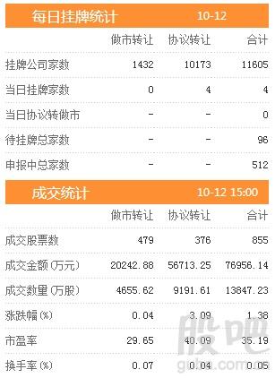 昨日新增挂牌企业4家,截至2017年10月12日,挂牌企业总数达到11605家。