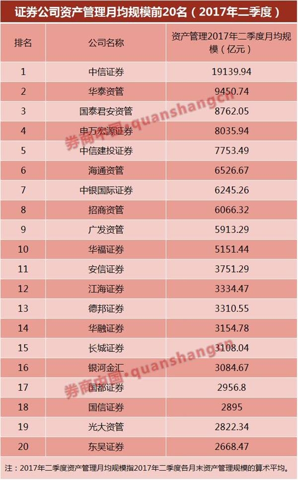 中基协最新数据显示,截至今年二季度,前20强券商资管月均规模总额达11.66万亿元,占整体券商资管规模的63%。