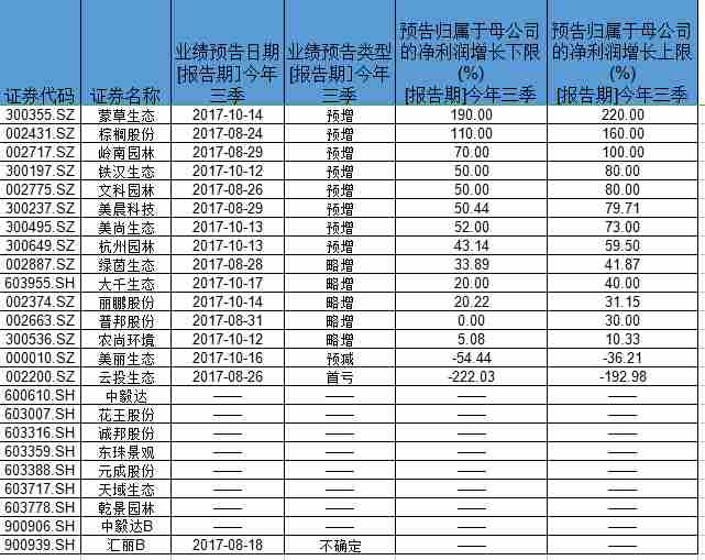 园林板块三季报预告已经陆续出炉,截止到10月17日,我们可以发现,已经发布预告的16家公司中,有13家公司预增。园林行业业绩整体呈提速趋势,业绩靓丽,龙头蒙草生态尤为突出,三季度业绩预增220%。未来两周三季报密集披露将印证园林公司业绩高增长预期。
