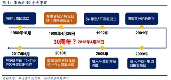 重大时间节点:2018年是改革开放40周年,海南建省和海南经济特区成立“双30周年”。时间点确定,重要性高、确定性大。对于未来可能出台的区域性政策存在预期差。
