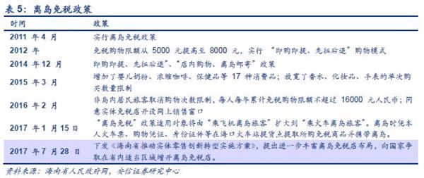 2011年4 月海南岛离岛免税政策正式落地实行,这是中央赋予海南国际旅游岛建设中含金量大、影响力最为广泛的重要政策之一,海南也是目前全国特殊的享有该项政策的省份。2017年7月28日海南省政府厅下发《海南省推动实体零售创新转型实施方案》,提出进一步丰富离岛免税店布局,向国家争取在省内适当区域增开离岛免税店。在过去的六年间,离岛免税业务不断调整,逐渐放宽了免税商品的购物限额和种类限制,不断创新购买、提货方式,大大升级了海南旅游的消费情况。