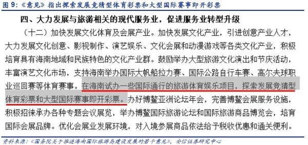 国家级的政策上,2010年初曾公布《国务院关于推进海南国际旅游岛建设发展的若干意见》(国发〔2009〕44号)。《意见》明确指出:在海南试办一些国际通行的旅游体育娱乐项目,探索发展竞猜型体育彩票和大型国际赛事即开彩票。考虑到文件的表述和我国现有的法律法规,我们认为海南开放类似澳门赌场的可能性较低,未来首先开放的或许是赛马竞技等旅游体育娱乐项目。需要注意的是,《意见》公布7年以来海南在赛马方面的试水推进较慢,未来是否会有新的政策推动有待观察。