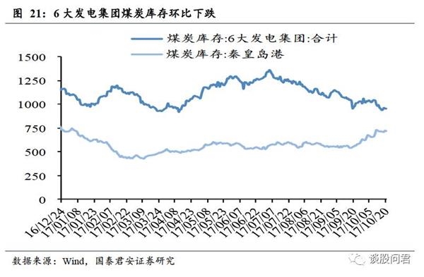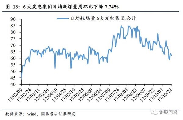 4.1。煤炭:动力煤期货价环比上涨,6大发电集团煤炭库存下跌