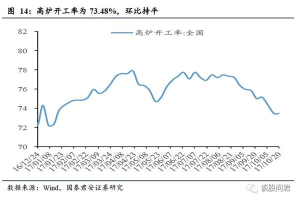 高炉开工率环比持平,螺纹钢价格环比下降。(1)10月14日至10月20日,高炉开工率为73.48%,环比持平。(2)10月20日,螺纹钢(HRB400 20mm)价格4084元/吨,环比下降0.92%;线材价格4374元/吨,环比下降0.91%;热轧卷(板)价格4268元/吨,环比下降0.33%。(3)期货方面价格,螺纹钢期货结算价格为3679元/吨,环比下降1.05%;热轧卷(板)期货价格3986元/吨,环比下降1.41%。(4)库存方面,线材库存为129.57万吨(上周为130.09万吨),环比下降0.4%,热轧卷(板)库存为205.32万吨(上周为213.03万吨),环比下降3.62%。