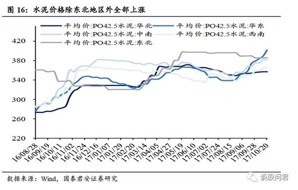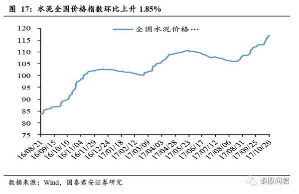水泥价格指数、玻璃价格均环比上涨。(1)环保政策影响石灰石开采,熟料供应紧张,加上企业水泥库存偏低,10月20日,水泥全国价格指数116.79,环比上升1.85%(上周环比上升1.59%).(2)10月20日,全国主要城市浮法玻璃现货平均价为78.36元/重量箱,环比上涨0.22%,同比上涨9.14%。