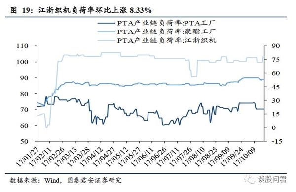 甲醇、聚丙烯期货价格环比上涨,PTA产业链江浙织机负荷率环比上涨。(1)10月20日,从期货结算价格上看,甲醇价格环比上涨2.53%,沥青价格环比下跌1.08%,聚丙烯环比上涨1.72%。(2)10月20日,PTA产业链PTA工厂、聚酯工厂负荷率环比均持平,江浙织机负荷率环比上涨8.33%。