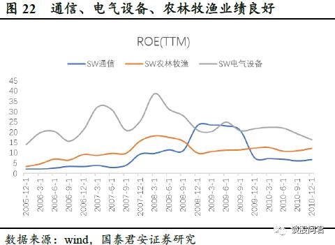 (2)2007.08~2008.11,CPI带动PPI,需求主导型通胀。经历了前几年的经济持续增长和低通胀,居民可支配收入增长,消费能力增强,由强劲的消费需求从下游向上传导,消费板块和中游制造业首先受益,业绩优异,相对收益领先。