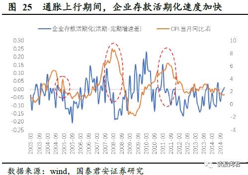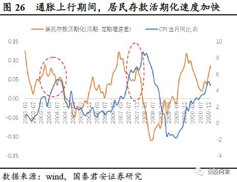 1)居民企业存款活期化速度加快。受通胀预期影响,居民企业投资消费需求增加,居民存款、企业存款活期化速度加快。