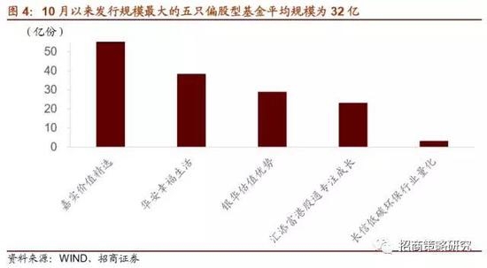 从10月以来新发行的普通股票型基金和偏股型基金的情况来看,最大的特征就是平均发行规模显著上升,发行规模最大的五只基金平均规模为32亿,从基金风格上来看,主要偏好蓝筹和白马成长。