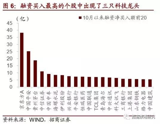 从买入股票的特征来看,10月以来,北上的资金主要还是偏好低估值蓝筹,净买入最高的三家为美的集团、海康威视和青岛海尔,分别净买入26亿、17.3亿和16.5亿,融资买入前20名个股中除了传统消费蓝筹以及金融股以外,也出现了京东方A、中兴通讯、科大讯飞等科技龙头股,净买入最高的三只个股分别为京东方A、中国平安和贵州茅台,分别净买入38.2亿、25.2亿和18.8亿。