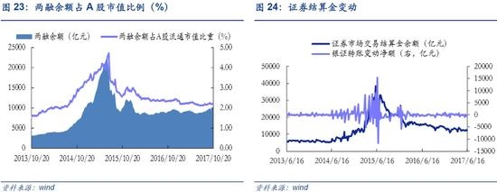 自2016Q3以来,A股净利润单季度同比增长率维持在较高水平(平均在20%左右),利率或有负面影响大概率被抵消。其中,在2017Q3全A单季度盈利增速为23.70%,整体超预期,持续创新高。具体来看,按照可比口径计算得出全AQ3净利润同比增速为19.47%,单季净利润同比增速为23.70%,较Q2的同比增长13.10%明显上升。剔除金融后,全AQ3单季净利润同比增速为40.25%,较Q2的同比增长23.92%大幅提升。其中,金融行业稳中向好以及上中游资源品如采掘、有色、钢铁行业的高增长是上市公司业绩增长的主要来源。同期,一年期国债收益率变动幅度稳定在0.08%左右;5年期和10年期国债收益率变动幅度较大,平均变动率分别为2.49%和2.43%。