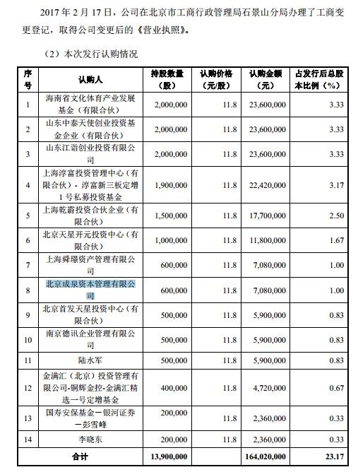 押中高送转不算什么,如果说成泉资本成为有可能上市的公司的原始股东,那就更“牛”了。