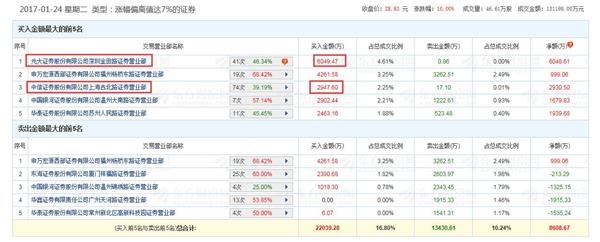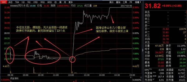 这5个涨停的过程中,各路一线彪悍游资频频现身参与炒作,直到1月24日仍有中信证券古北路、光大证券金田路等游资仍在进场。然后停牌了。