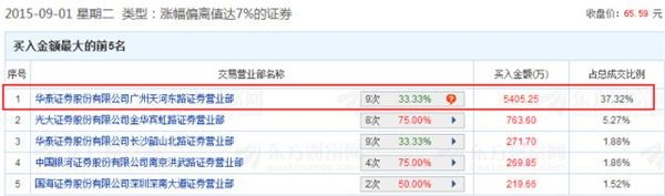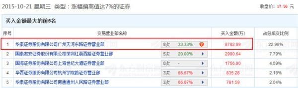 其中,买一正是华泰证券广州天河东路营业部,其买入金额高达近1.95亿元,占当日成交占比超过10%;湘财证券佛山祖庙路营业部、光大证券佛山绿景路营业部则分别位居买三、买四,买入金额也都超过9700万元。