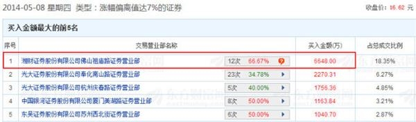 有意思的是,通过结合个股龙虎榜数据,廖国沛所控制账户的栖身营业部也得以现身。其中典型的代表营业部包括4个,分别为:光大证券佛山绿景路营业部、华泰证券广州天河东路营业部、长江证券佛山普澜二路营业部、湘财证券佛山祖庙路营业部。