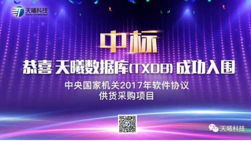 一、数据库成功入围中央国家机关2017年软件协议供货采购项目