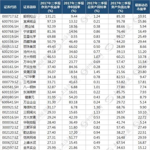 既然回溯五年可以证明巴菲特选股法在A股市场上是非常有效的,那么,今年三季报净资产收益率居前个股应当也是一个很好的投资标的。