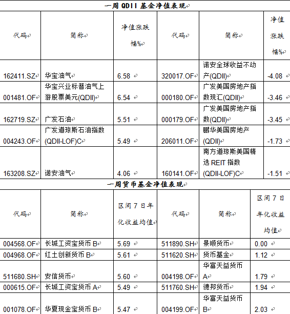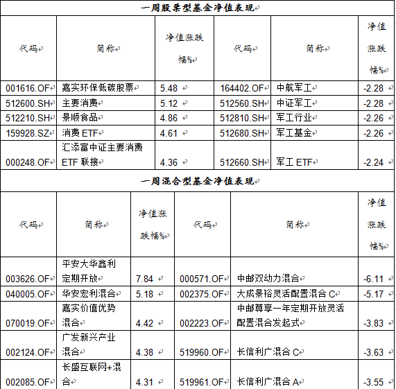 一周场外基金业绩表现: