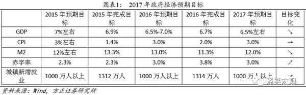 导读 “两会”将于3月3日和5日开幕,将对2017年经济社会发展目标、财政货币政策、供给侧改革等作出重大部署,对未来经济和大类资产产生深远影响。2016年12月中央经济工作会议强调2017年是供给侧结构性改革的深化之年,以优异成绩迎接党的十九大胜利召开。2月习近平总书记主持深改组会议,强调“党政主要负责同志是抓改革的关键,要把改革放在更加突出位置来抓”。 摘要 预计2017年目标设定:GDP为6.5%左右;CPI为3%左右,与2016年持平;M2为12%,比2016年降低1个百分点;赤字率为3%,与2016年持平。 财政政策积极有效,货币政策稳健中性。稳增长在2017年的压力有所缓解,2016年初以来名义GDP增速小周期复苏。2017年货币政策强调稳健中性,已经转向事实上的中性偏紧,先后上调公开市场利率。一季度信贷社融超预期,资金脱虚向实,投资需求恢复,央行进行窗口指导。 政策从稳增长转向防风险和促改革。1)防风险去杠杆放在更加重要的位置上,体现在房地产调控、债市去杠杆、险资监管新规等。2)深入推进“三去一降一补”。去产能加码扩围,从钢铁煤炭到玻璃、水泥、电解铝、造船。降低企业杠杆,债转股。房地产去库存,因城施策。减税降费降成本,中美减税竞争。补短板,基建,PPP.3)深入推进农业供给侧改革:禽畜养殖、土地流转(农垦)、现代种业、农田水利基建、化肥农药、绿色环保农机。4)加快国企改革,混改为重要突破口:混合所有制改革是国企改革的重要突破口,在电力、石油、天然气、铁路、民航、电信、军工等领域迈出实质性步伐。各地两会积极推动混改。5)“一带一路”建设步入快车道:“一带一路”+PPP、优势产业输出和西部地区大规模基建。6)京津冀协同发展深入推进,2017年2月是三周年。7)PPP政策红利不断,落地和规模均超预期。8)房地产调控,建立长效机制,确立大都市圈战略。 经济“软着陆”,股市结构性牛市,中游崛起。由于需求超预期、信贷超预期和改革超预期,带来业绩超预期。战略看多A股,2017年有望迎来结构性牛市行情。受益于企业业绩改善和改革提升风险偏好,大类资产从房市债市向股市轮动。两会前后是股市做多的时间窗口,围绕经济业绩牛(中游崛起)和改革红利牛(一带一路、国企混改、京津冀一体化、去产能加码扩围、农业供给侧改革等)展开。 风险提示:改革不及预期,政策推出和推进不及预期。 正文 “两会”将于3月3日和5日开幕,将对2017年经济社会发展目标、财政货币政策、供给侧改革等作出重大部署,对未来经济和大类资产产生深远影响。 1 两会前瞻:深化供给侧结构性改革 “两会”将于3月3日和5日开幕,发布2017年经济社会发展目标和任务。2016年12月中央经济工作会议将政策重心从稳增长转向防风险和促改革,强调2017年是供给侧结构性改革的深化之年,坚持以推进供给侧结构性改革为主线,适度扩大总需求,全面做好稳增长、促改革、调结构、惠民生、防风险各项工作,以优异成绩迎接党的十九大胜利召开。2月6日,习近平总书记主持深改组会议,强调“党政主要负责同志是抓改革的关键,要把改革放在更加突出位置来抓”。 1.1 预计GDP增速目标为6.5%左右 根据当前经济形势以及2016年12月中央经济工作会议精神,预计2017年政府经济预期目标设定为: GDP为6.5%左右,较2016预期目标下降; CPI为3.0%左右,与2016年持平; M2为13%,较2016年预期目标下调; 赤字率为3.0%,与2016年持平。 ![]() 各省市两会期间已公布2017年本省市 GDP 增速预期目标,全国平均下调了0.1个百分点。分区域看,东部、中部分别下调0.3个、0.4个百分点;西部、东北分别上调0.1、0.3个百分点。分省市看,11省市下调预期目标,14 省市预期目标与上年持平,5省上调预期目标。 1.2 财政政策积极有效,货币政策稳健中性 财政政策强调积极有效。2016年12月中央经济工作会议强调“财政政策要更加积极有效,预算安排要适应推进供给侧结构性改革、降低企业税费负担、保障民生兜底的需要”。 稳增长在2017年的压力有所缓解,2016年初以来名义GDP增速小周期复苏。2016年中国1-4季度GDP实际增速分别为6.7%、6.7%、6.7%、6.8%,呈L型走势,表明中国经济增速换挡从快速下滑期步入缓慢探底期(GDP增速从2007年的14.2%下滑到2015年的6.9%、2016年的6.7%,并开始逐步触底企稳)。尤其值得注意的是,2016年1-4季度名义GDP增速分别为7.15%、7.32%、7.81%、9.9%,一路回升,考虑到2017年1季度PPI低基数和PMI维持在相对高位,名义GDP增速的回升势头仍在延续。 2017年货币政策强调稳健中性,已经转向事实上的中性偏紧,先后上调公开市场利率。2016年12月中央经济工作会议提出“货币政策要保持稳健中性,适应货币供应方式新变化,调节好货币闸门,努力畅通货币政策传导渠道和机制,维护流动性基本稳定”。未来货币宽松的制约因素开始增多,房地产调控、通胀预期升温、人民币贬值和资本流出压力、2017年美联储加息次数上调至三次等。2017年初以来,央行先后上调MLF、OMO、SLF等公开市场利率。由于投资需求恢复、信贷超预期、通胀预期升温、房价调控压力较大等,货币政策中性偏紧可能至少持续到2季度。 一季度信贷社融超预期,资金脱虚向实,投资需求恢复,央行进行窗口指导。1月信贷社融大增,除了债券收益率大幅上升后企业融资转向信贷的替代效应外,可能跟地方政府换届后投资冲动、基建PPP发力、企业盈利恢复后企业设