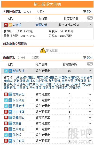 3日新增挂牌企业1家,挂牌企业总数达到10684家,做市转让1080家,协议转让9604家,待挂牌总家数87只,申报中总家数达到166家。